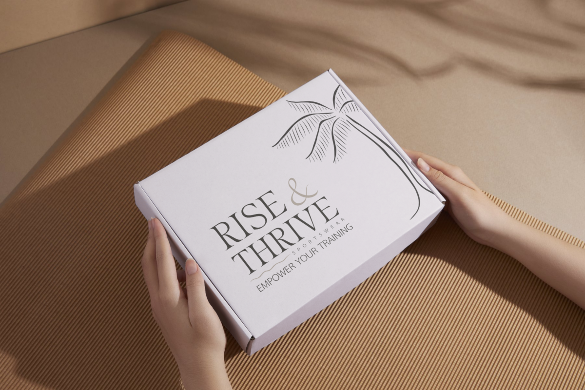 Pour révéler l’essence de Rise & Thrive, j’ai imaginé une identité lumineuse, organique et élégante. La typographie raffinée associée à une palette douce et minérale évoque la chaleur du sable, l’énergie des éléments et la féminité en mouvement. L’ensemble traduit l’alliance entre dépassement de soi et douceur, au cœur de l’univers de la marque.